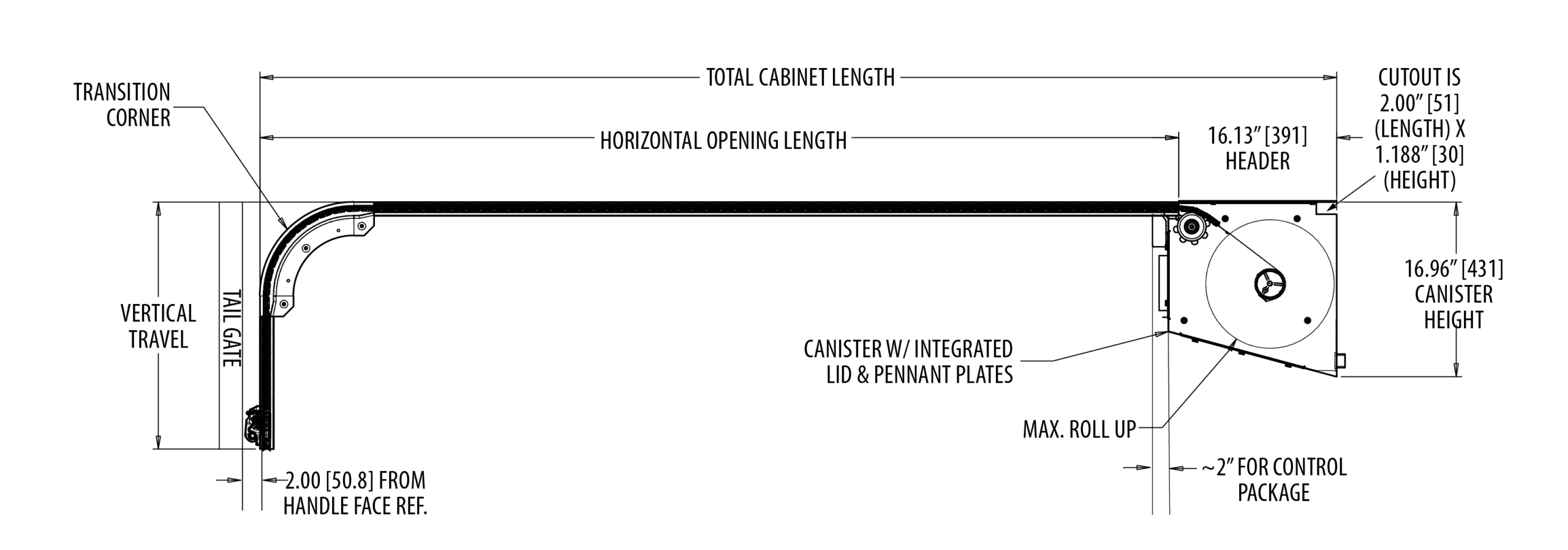 Dynatect will provide Horizontal Opening Length and Header dimensions based on Total Cabinet Depth